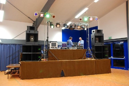 Probelauf der Musik- und Lichtanlage vor einer Veranstaltung in der Tennis-Mehrzweckhalle
